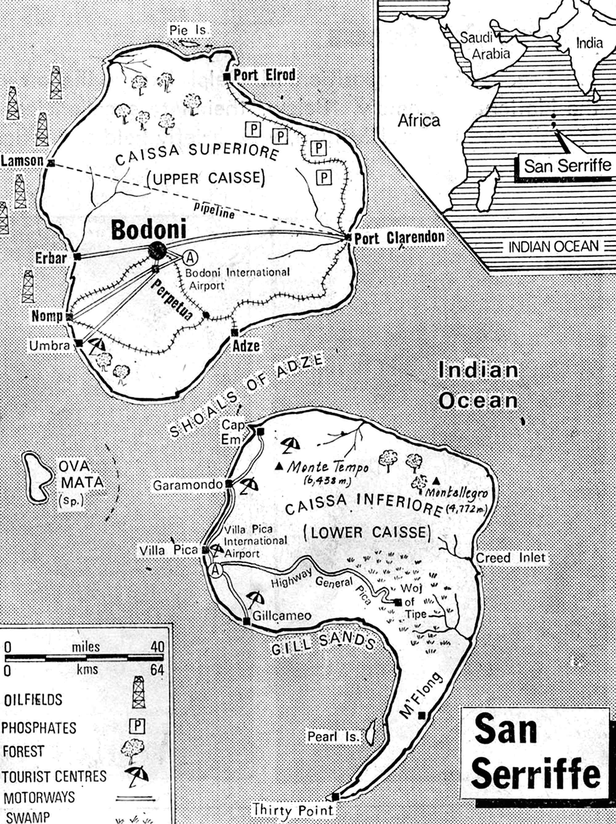 Il primo aprile del 1977 il Guardian pubblica una mappa di quella che sostiene essere una nuova isola, scoperta nell’Oceano Indiano. Se il nome dell’isola (Sans Serriffe) non fosse di per sé già abbastanza sospetto, basta soffermarsi sui nomi dei luoghi riportati sulla mappa (Bodoni, Gill Sands, Upper Caisse, Garamondo) per capire lo scherzo del Guardian ai lettori.